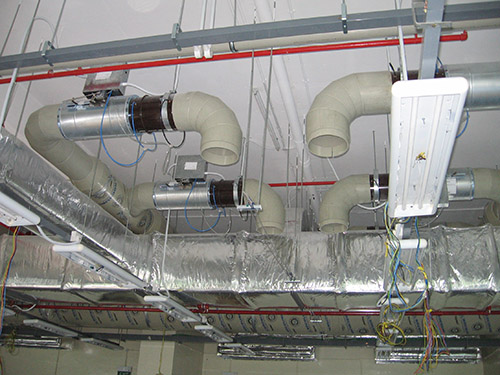 5) 實(shi)驗室風(feng)管(guan)(guan)在選擇防腐蝕較好,硬度(du)高(gao)的材質。本工程(cheng)涉及(ji)到所有風(feng)管(guan)(guan)均可采用防腐蝕性能(neng)好的PVC/UPVC材質,風(feng)機全部(bu)為腐蝕性能(neng)好的玻璃鋼風(feng)機。